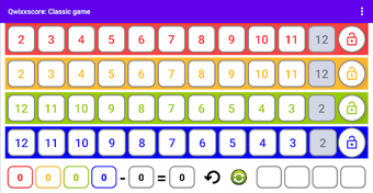 Кроме того, QwixxScore позволяет игрокам разблокировать ячейки "12" или "2", когда проверено 6 чисел, отклоняясь от обычного требования 5 чисел.
